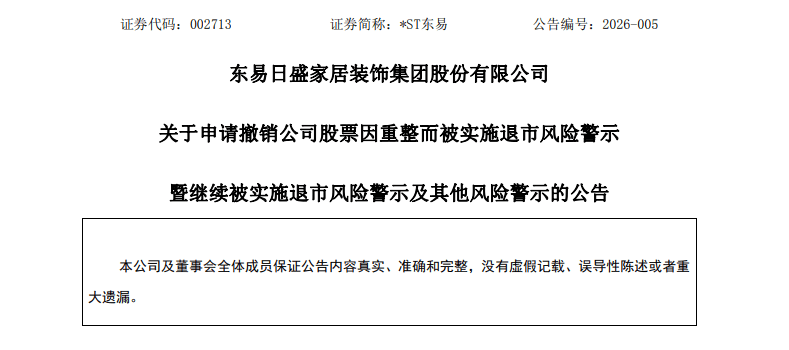 此前,*ST东易(002713.SZ)发布通知布告,