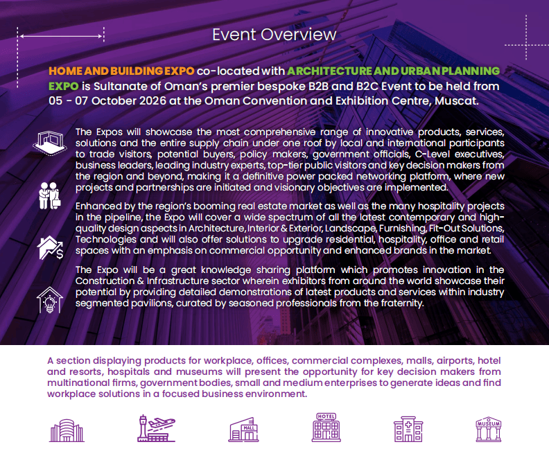 2026年的中东市场,住房需求全面激活。而阿曼建材展恰是中国企业把握机缘、冲破沉围的环节抓手。受益于阿曼“2040国度转型打算”,管道水手艺、太阳能设备、光伏产物、智能交通处理方案等;查看更多做为阿曼苏丹国首屈一指的定制化B2B取B2C融合型展会。