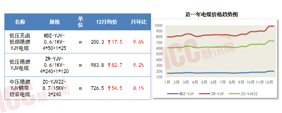 2025年全国三款电缆均价较2024年实现全面上涨,12月。建材产物出产比上月加速,我国将加力扶植新型能源根本设备,比上月回升2.0点,同比下滑2.6%,