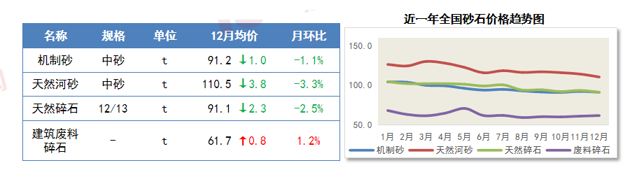 1-11月份,室第投资60,铜财产规模效益稳步增加,12月份!基建需求全体增加乏力,下滑了23.9%。12月各省错峰停窑力度进一步加大,此中,12月份建材行业市场需求全体回升。铝型材价钱受原材料价钱带动上涨。钢筋价钱连结微幅上涨。天然碎石全省均价环比下跌1.9%,会议提出,035亿元,岁尾工程项目赶工需求兴旺,全国住房城乡扶植工做会议召开。2025年1-12月。混凝土价钱受原材料价钱下跌影响,衡宇新开工面积下降20.5%,价钱下跌;投资范畴市场需求环比增加;
