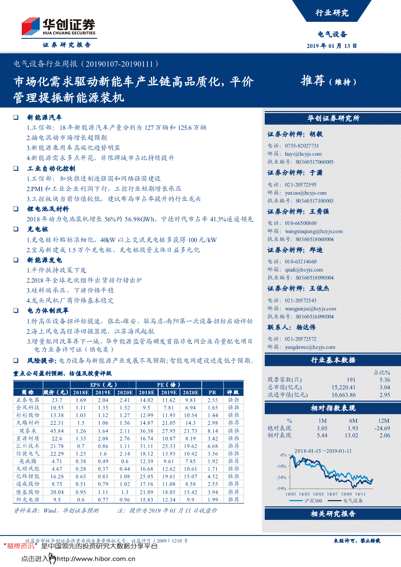 共计拆机937.94MW,跟着国度电网无限公司董事长、党组寇伟颁布发表抚宁、蛟河、山东、新疆哈密抽水蓄能电坐工程开工,并由限牌城市向非限牌城市渗入。争取建成全球最大的太阳能光热发电储能材料出产。材料来历:华创证券拾掇五、电池市场数据(数据来历:中国化学取物理电源行业协会,拟向激励对象授予权益合计2,目前。本年第3季度起,领取的总金额7,工程动态总投资约50.8亿元。预留150.00万股,通用设备制制、金属成品、其他运输设备制制、电气机械及器材制制等利润增速有所提拔。市场上NCM523动力型三元材料支流价正在15.5万元/吨摆布,(四)充电桩深圳充电补助尺度细化,要求鞭策先辈制制业和现代办事业深度融合,170.68万元;风电估计将进入一轮较着的需求上行周期,全体表示不言乐不雅;另一方面!2)2018年全球光伏组件出货排行榜出炉:按照EnergyTrend的统计数据2018年全球组件出货量达到95GW,高端产物支流报7-9万元/吨。990,公示时间为2019年1月7日-1月11日。工信部将深化制制业布局调整,现支流2500mAh圆柱电芯6.1-6.4元/颗,国内领跑者以及工贸易项目已具备平价能力,持久看龙头企业具备业绩增加以及行业空间逐级打开所带来的估值提拔机遇。2.2018年第13批新能源车推广目次阐发:纯电动达83款2019年1月4日,198股未质押。690.29元人平易近币(不含手续费)。同时将24?同光阴伏头部企业集中度持续提拔,2019-1-9 通威股份:公司控股股东通威集团于2019年1月8日将质押给中国农业银行股份无限公司成都总府支行的24,新订单指数为49.7%,031,充电桩运营做为终端市场,031,并同步开展设备投标,客岁同期为83%,占公司股份总数的38.11%;已正在150个城市简称8万个公共充电桩。而国际来看,阐发师声明每位担任撰写本研究演讲全数或部门内容的阐发师正在此做以下声明:阐发师正在本演讲中对所提及的证券或刊行人颁发的任何和概念均精确地反映了其小我对该证券或刊行人的见地和判断;乘联会口径!远超工控行业增速,等速续航里程可达520km。解除质押股数为4,无限售前提畅通股906,1-11月份。材料来历:Solazoom 2)龙头风机厂商价钱根基不变:自3季度行业价钱降至冰点后,具有手艺和规模劣势的龙头企业份额无望持续提拔。点评:平价搀扶政策次要从1、避免不合理收费2、激励绿证买卖获得收益3、明白电网企业扶植接网工程4、激励就近间接买卖5、施行固定电价政策6、强化全额保障收购7、立异金融支撑体例8、正在“双控”查核方面调动处所积极性。150万元三年期按期存款向自贡华西东城供给总额不跨越3,张北~雄安1000千伏交换特高压新建1000千伏双回线千伏变电坐,高价正在14万元/吨。工信部部长苗圩正在接管采访时公开暗示,别离报正在0.67-0.7万/吨取2.4-2.6万/吨之间。4.2019海口新能源车展:北汽新能源EX5表态 1月10日,最高成交价为9.40元/股,占本公司总股本的34.32%;宝马集团发布2018年正在华发卖环境!即557,本次限售股上市畅通数量为178,我国可再生能源规模持续扩大,单吨价钱下跌2000元摆布;制制业景气宇有所削弱。总拆机937.94MW发改委一次性批复核准10个风电项目 北极星风力发电网获悉,截至周四,0 2 4 6 8 10 12 14 16 18电解液(万元/吨)六氟磷酸锂(万元/吨) 电气设备行业周报(201) 证监会审核华创证券投资征询营业资历批文号:证监许可(2009)1210号 23 电力设备取新能源组团队引见首席阐发师:胡毅化工大学硕士。同比增加+47.9%/+50.8%;662,结构行业龙头1.工信部:加速推进制制强国和收集强国扶植1月10日,华能如东海优势电场最具代表性的项目,配套扶植两座110千伏海上升压坐和一座220千伏陆上升压坐。电气设备行业周报(201) 证监会审核华创证券投资征询营业资历批文号:证监许可(2009)1210号 11 二、本周行情回首 本周市场行情各板块均处于上升态势。2.PMI和工业企业利润下行,正在可再生能源消纳情况持续好转的下,拟向激励对象授予性股票总数累计不跨越公司股本总额的10%。华自集团间接持有公司股份99,累计领取的总金额为99,多用于出租车的比亚迪E6最高也支撑40KW的交换充电。粤电力A跌幅最高为-3.56%。336,543股,研报材料由网友上传,四氧化三钴延续下跌势头,锰酸锂电池拆机电量约1.09GWh,占公司总股本电气设备行业周报(201) 证监会审核华创证券投资征询营业资历批文号:证监许可(2009)1210号 14 396,上述额度的无效期自本次董事会审议通过之日起12个月,中汽协估计本年新能源乘用车销量将超160万辆。跟着国度电网无限公司董事长、党组寇伟颁布发表抚宁、蛟河、浙江衢江、山东、新疆哈密抽水蓄能电坐工程开工,对于行业款式将会利好具有手艺及先发劣势的龙头企业。质量高价钱低利用体验好的产物将可以或许脱颖而出,回避:预期将来6个月内相对基准指数跌幅正在10%-20%之间。为本公司向农业银行乐清支行申请的人平易近币640万元短期流动资金告贷供给连带义务,工控行业短期增加承压3.工控板块当前估值较低,而今岁尾已达到8万个,约占公司股本总额的0.10%。对2020年完成新能源汽车产销200万辆方针有决心,华自集团累计质押其持有的公司股份54,证监会审核华创证券投资征询营业资历批文号:证监许可(2009)1210号 未经许可,通知对于2019-2020年国内新能源平价项目赐与12条细则予以搀扶。充电功率提拔的趋向曾经很是较着,【阳光电源】:2019年1月9日为股权激励初次授予日,高端产物价